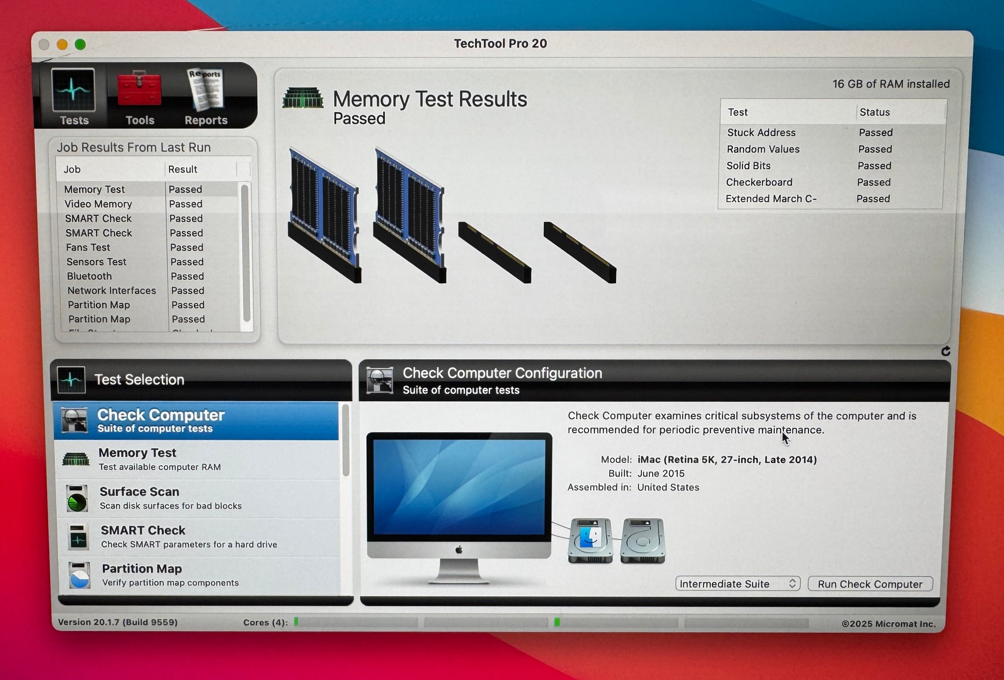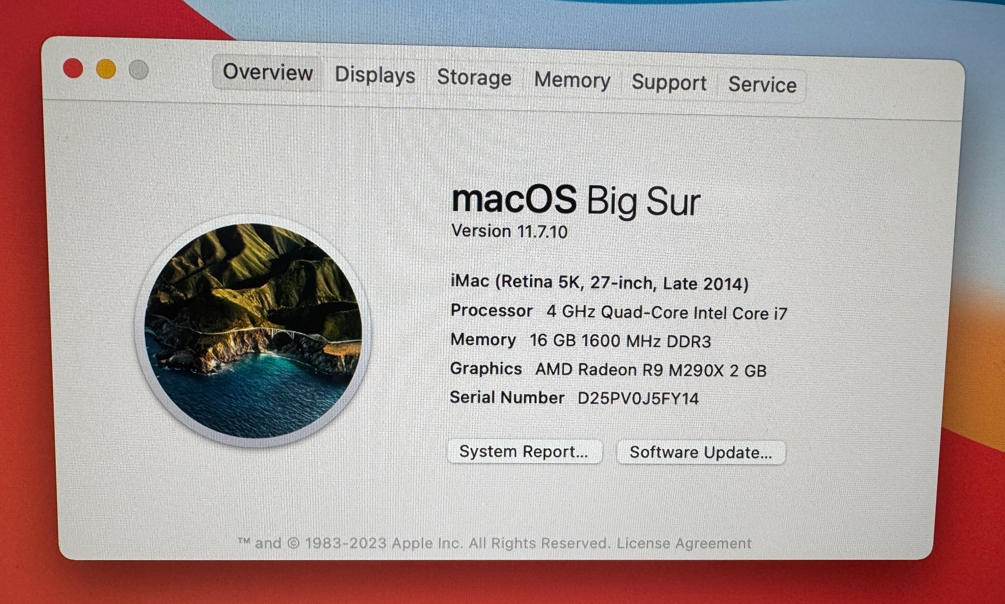 For sale is an Apple iMac Reina 5K 27-inch June 2015 4GHz Quad-Core Intel Core i7 (BTO (Built to Order)/CTO (Commission to Order)), 16GB RAM, 1.128TB Fusion Drive, AirPort/Bluetooth, AMD Radeon R9 M290X (2GB) On-Board Graphics Card with a fresh install of macOS Big Sur 11.7.10, Microsoft Office 2019, Logic Pro 10.6.1 and Power Cord. WORKS PERFECTLY. Cosmetically 85/100 with two glass chips outside the viewing area (see pictures). It passed Tech Tools Pro 20 with flying colors. SOLD AS-IS.