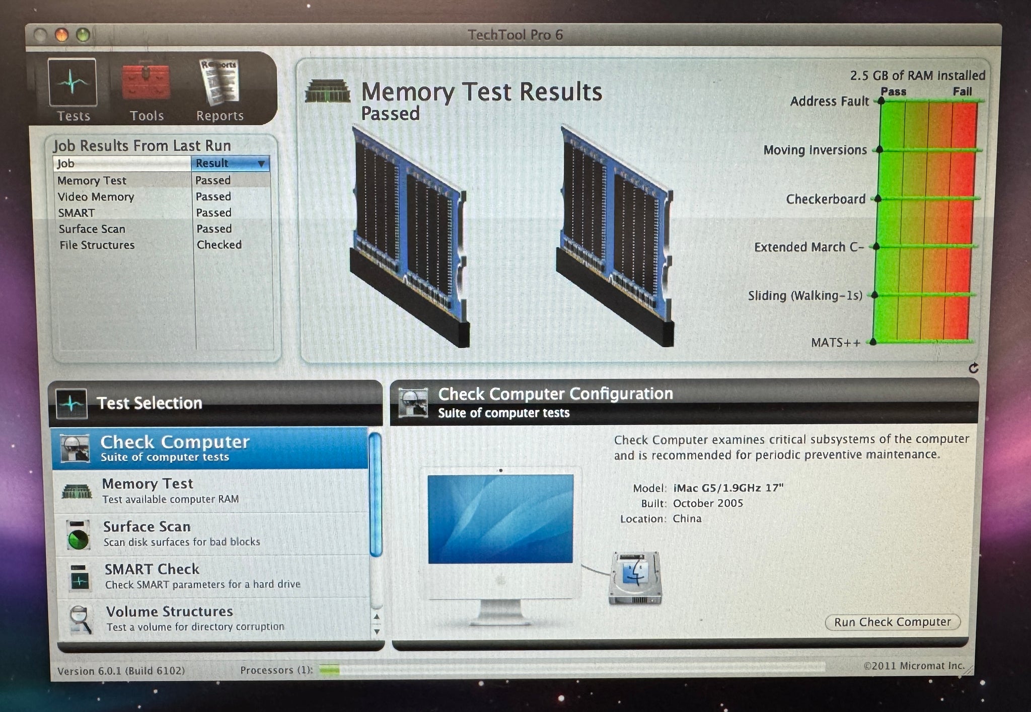 For sale is an Apple iSight G5 17-inch October 2005 1.9GHz (MA063LL/A), 2.5GB RAM, 160GB HDD, SuperDrive, Airport/Bluetooth, ATI Radeon X600 Pro (128MB) Graphics Card with a fresh install macOSX Leopard 10.5.8, iLife '08, iWork '08 and Power Cord. WORKS PERFECTLY. It passed Tech Tools Pro 6 with flying colors (see picture). RARE MODEL! SOLD AS-IS.