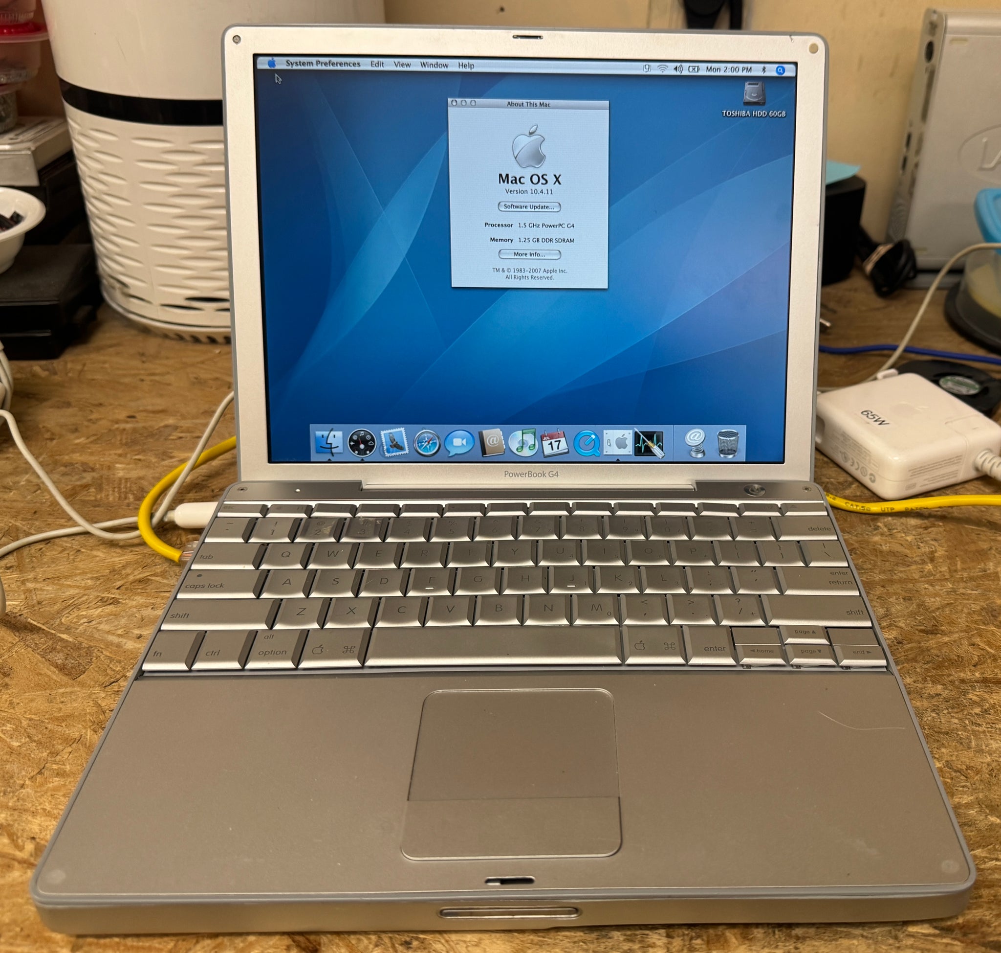 For sale is an Apple PowerBook G4 12-inch September 2005 1.5GHz (M9690LL/A), 1.25GB RAM, 60GB HDD, COMBO Drive, AirPort Extreme, Bluetooth, GeForce FX Go5200 (64MB) On-Board Graphics Card with a fresh install of OSX10.4.11 Tiger, OS9.2.2 Classic Support and 65W AC Adapter.  The Battery is NOT INCLUDED FUNCTIONS PERFECTLY.  Cosmetically 90/100.  SOLD AS-IS.