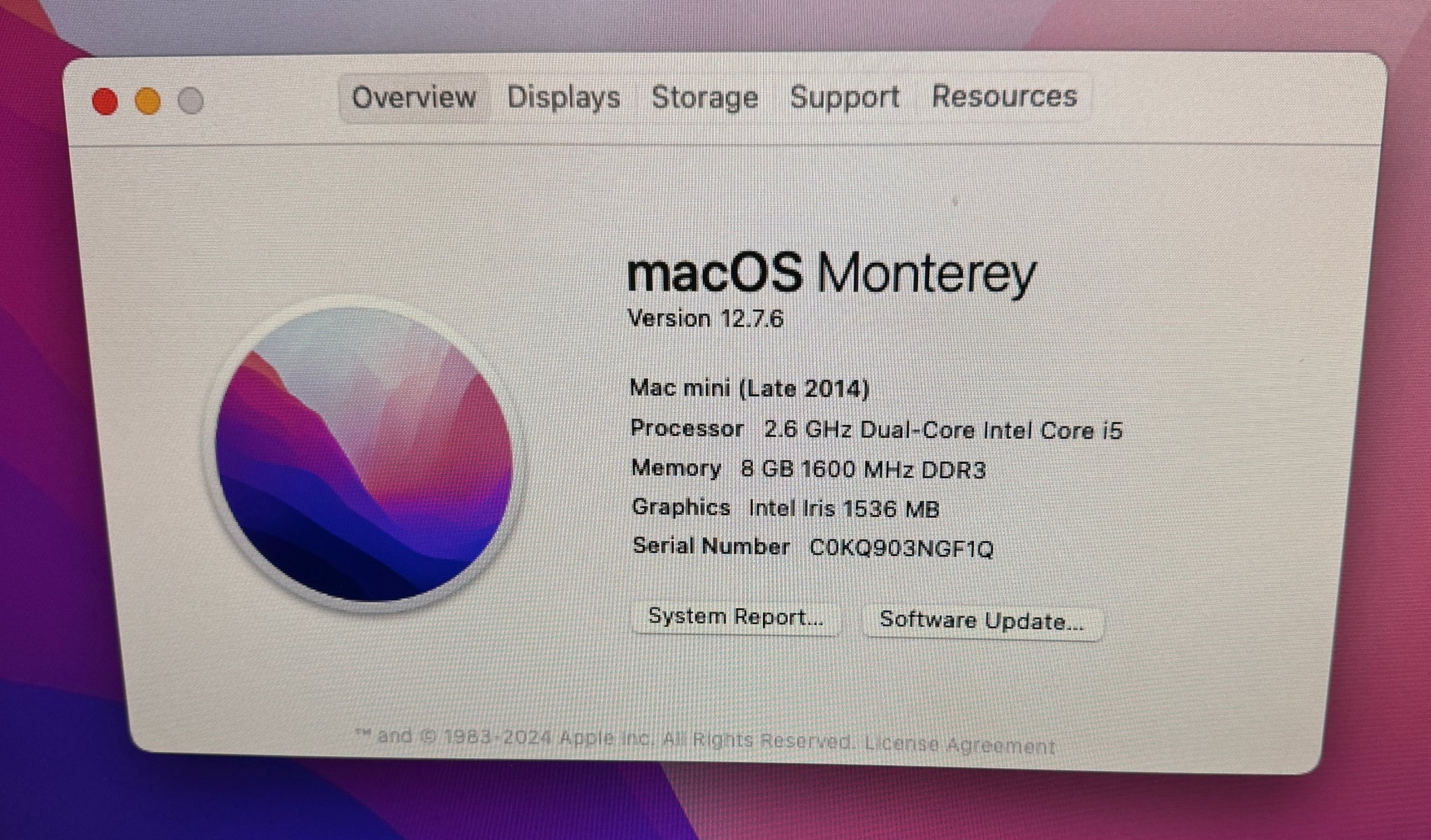 For sale is an Apple Mac mini August 2015 Factory Refurbished 2.6GHz Dual-Core Intel Core i5 (MGEN2LL/A), 8GB RAM, 1TB HDD, AirPort/Bluetooth with an Intel Iris (1536MB) On-board Graphics Card and a fresh install of macOS Monterey 12.7.6 and Power Cord.  FUNCTIONS PERFECTLY.  Cosmetically 90/100.  It passed Tech Tools Pro 18 with flying colors (see picture).  SOLD AS-IS.