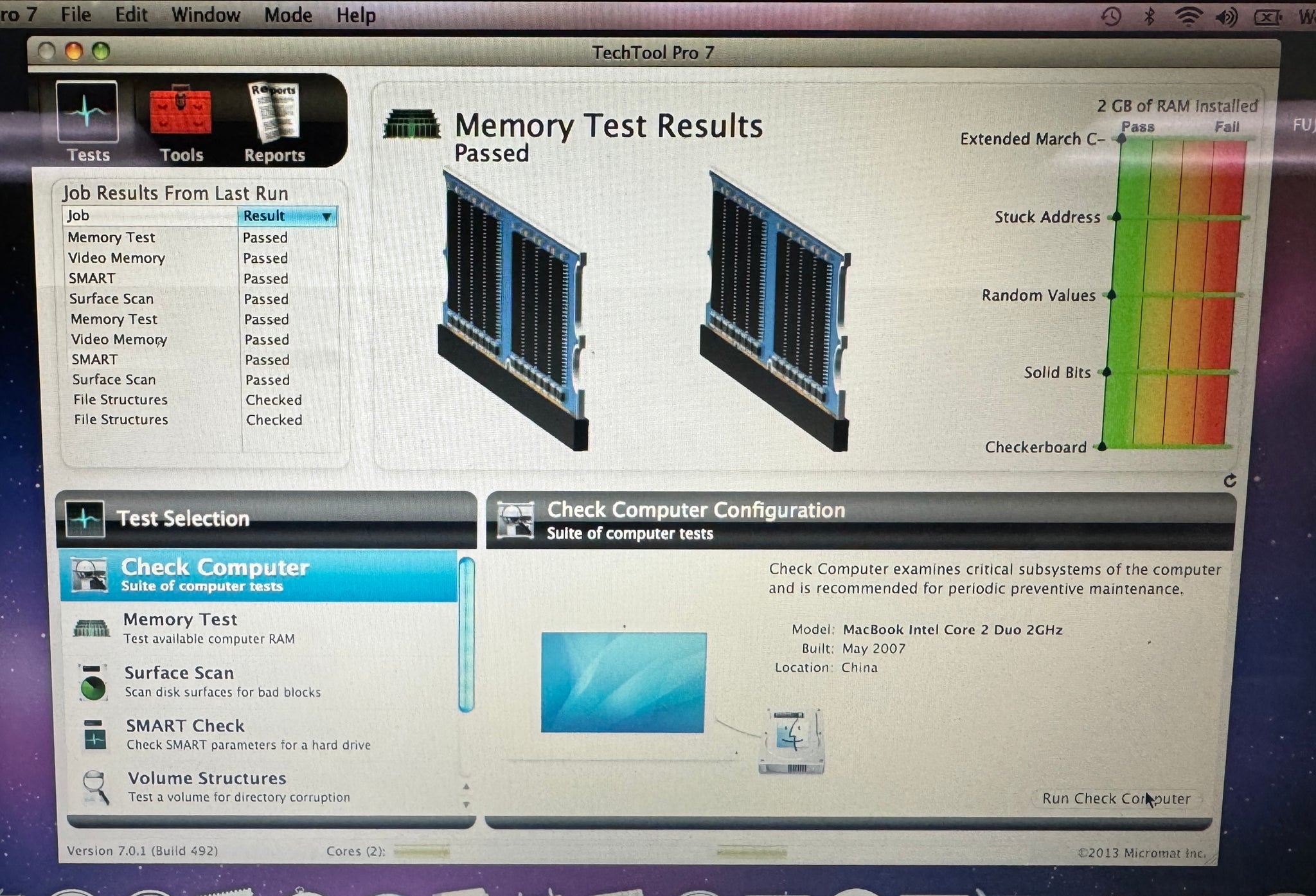 2. August 2007 Production, 3GB RAM, 80GB HDD, COMBO Drive, AirPort/Bluetooth, Intel GMA 950 (64MB) On-Board Graphics Card with a fresh install of OSX10.7.5 Lion and 60W MagSafe Adapter. The Battery has 834 Charge Cycles and holds a charge. WORKS PERFECTLY. It passed Tech Tools Pro 7 with flying colors. Cosmetically 90/100. SOLD AS-IS.