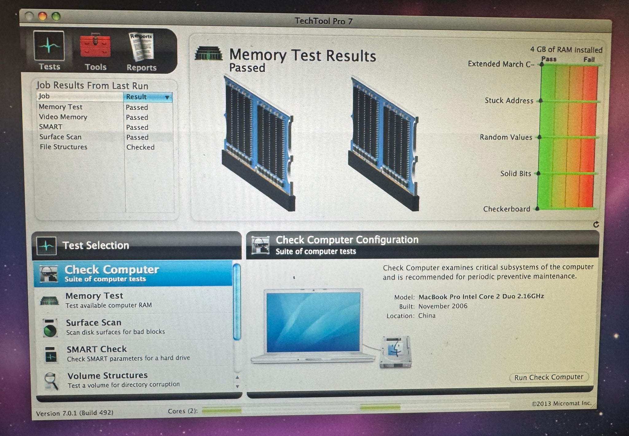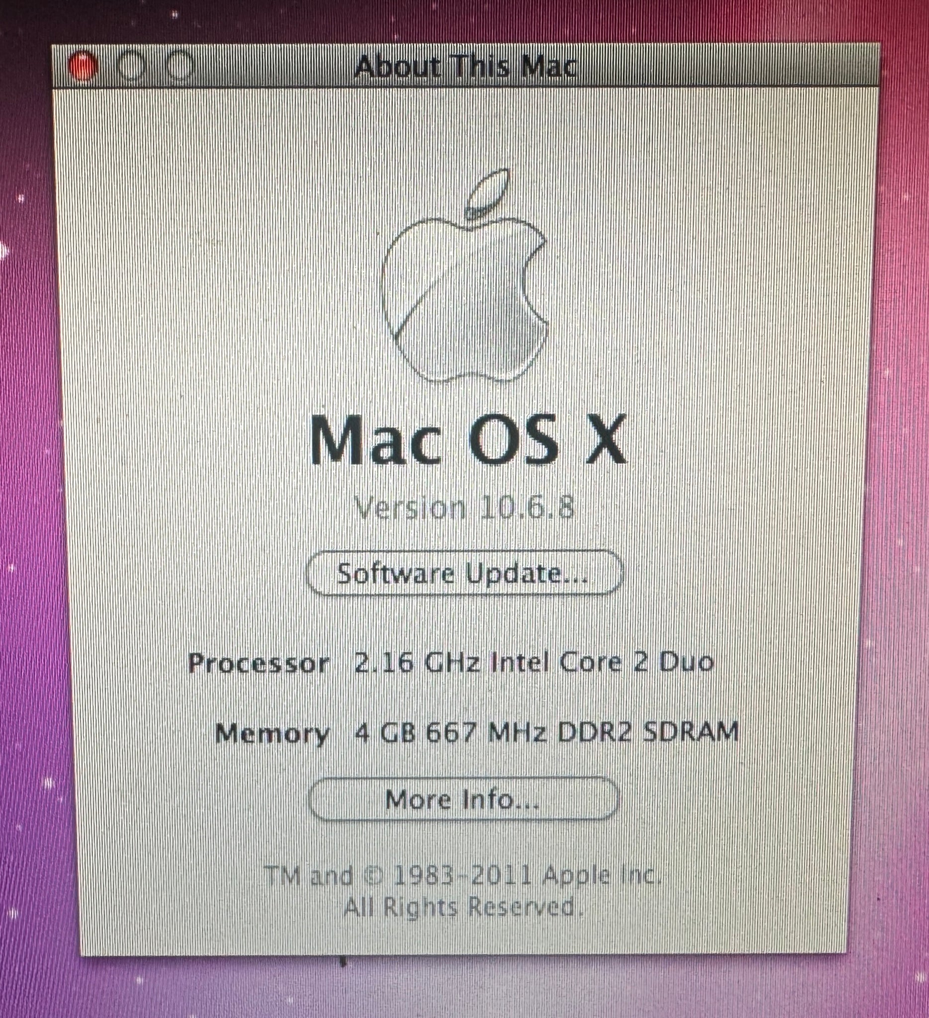 For sale is the following Apple MacBook Pro 15-inch 2.16GHz Intel Core 2 Duo (MA609LL), February 2007 Production, 3GB RAM, 500GB HDD, SuperDrive, Airport/Bluetooth, ATI Radeon X1600 (128MB) On-Board Graphics Card with a fresh install of macOSX Snow Leopard 10.6.8, Xcode, Rosetta, iLife '11, iWork '09 and 85W MagSafe Adapter. THERE IS NO BATTERY PRESENT. WORKS PERFECTLY. It passed tech Tools Pro 7 with flying colors. Cosmetically 85/100 with a top case hole where a previous owner had drilled through the original hard drive covered. SOLD AS-IS.